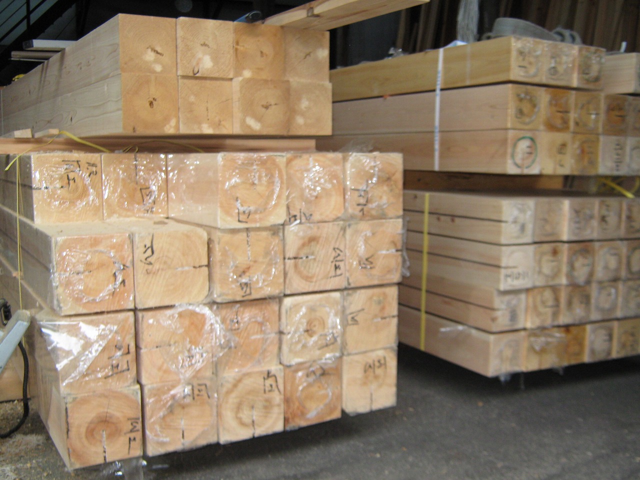 只今基礎工事を着工中の『K様邸』に使うヒノキの柱が入荷しました。 ホ~ル・茶の間・寝室...